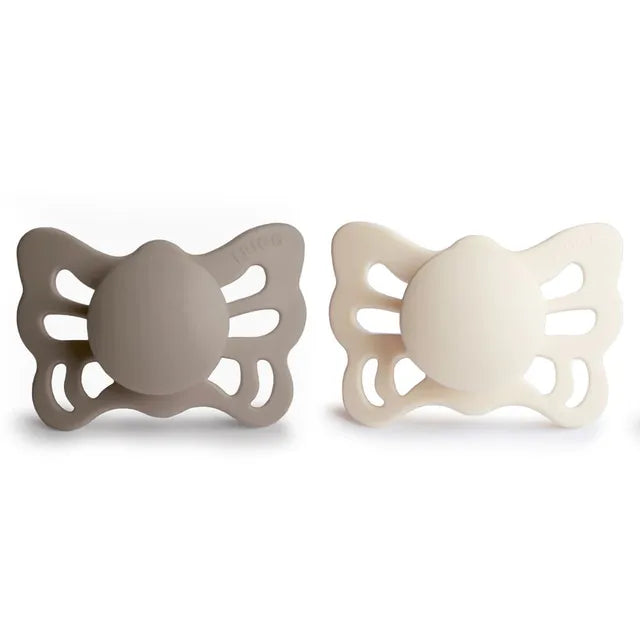 Frigg Butterfly Anatomical Silicone Baby Pacifier 6M-18M ,Pack of 2 , Portobello / Cream - Size 2