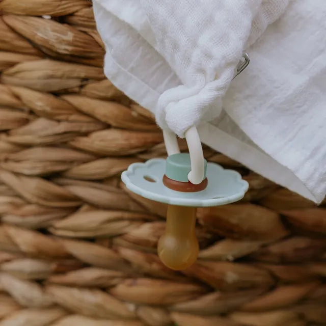 The Frigg Daisy pacifier with scalloped edges that mimic flower petals is the essence of elegant design. The flowery and modern details catch the eye of every style-conscious mother. That makes Frigg the perfect fit for today’s mothers who attach great importance to classic designs with modern twists when choosing baby essentials.