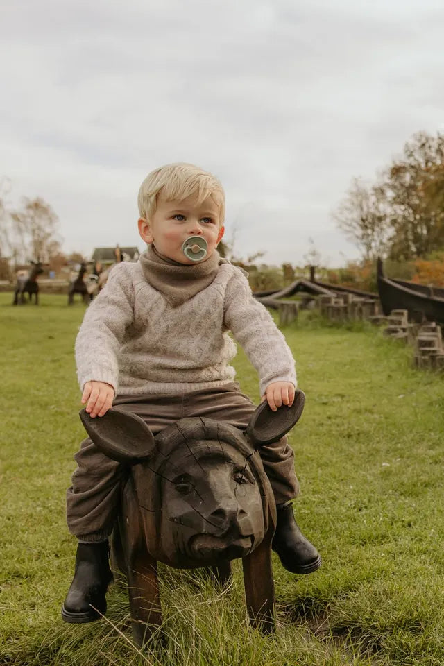 A common thread can be drawn from FRIGG's proud statement "Made in Denmark" to the Vikings who sailed across the Kattegat and out into the great wide world. Ancestors with courage, strength, freedom, and wanderlust, has given us tales and legends of terrible punishments and plunders, which luckily today is replaced with trade, cooperation, and respect between countries. Little Viking, with its small round shield, must protect, give security and joy to the little brave Vikings of the world.