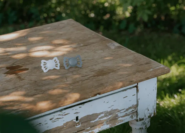 Frigg Lucky is inspired by the four-leaf clover. The shield has wavy edges that are shaped as the leaves of the four-leaf clover, and these leaves are reflected on the shield as well, functioning as airholes. In the middle you find a round center that highlights the elegance of the pacifier.