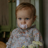 FRIGG Lucky is inspired by the four-leaf clover. The shield has wavy edges that are shaped as the leaves of the four-leaf clover, and these leaves are reflected on the shield as well, functioning as airholes. In the middle you find a round center that highlights the elegance of the pacifier.