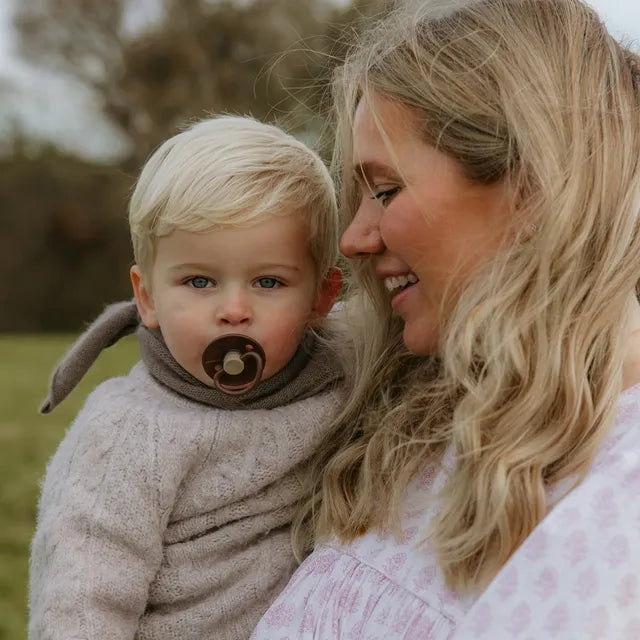 Say hello to FRIGG's 6-Pack ƒ??Earthy Wonder', a package consisting of 6 round pacifiers in shades of a warm embrace of the earth itself. These pacifier colors embody the harmony of the natural world. One of the pacifiers is a night pacifier, FRIGG Night pacifier has a glow-in-the-dark function. The handle and knob will glow in the dark and solve the challenge of finding and placing your baby's pacifier in the middle of the night.