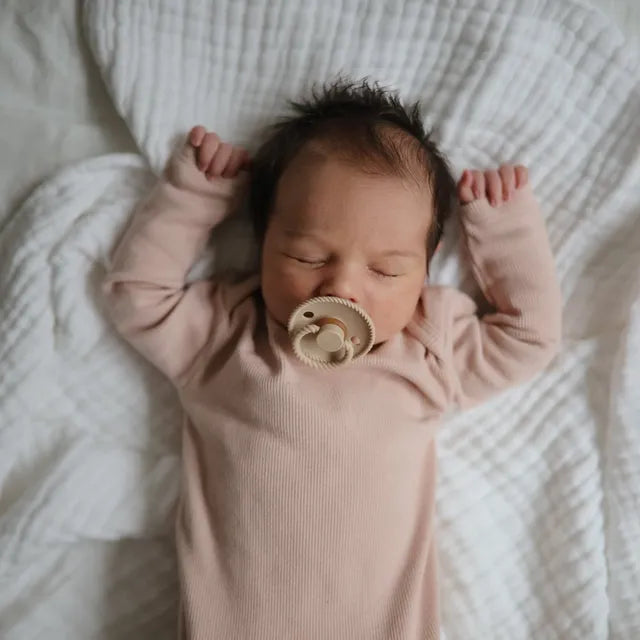 The glow-in-the-night feature is softly bright and won't harm your baby's eyes and you can easily find the pacifier without turning on the lights. Hold the pacifier in light to activate the glow function. All the pacifiers in FRIGG 6-Packs are round pacifiers with a round nipple shape. The round pacifier resembles a mother's breast in both shape and material.