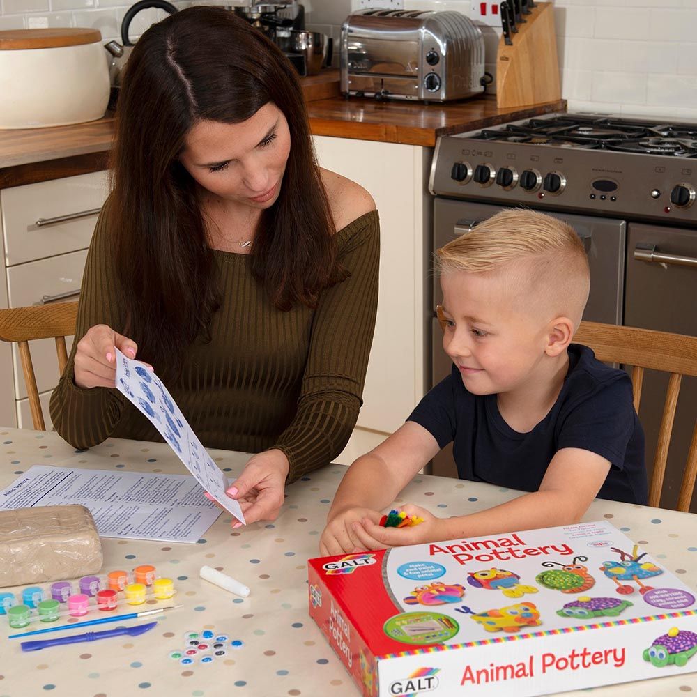 Make and paint six fun clay animals including a puppy pot, snail coil dish and wacky bird. Learn basic pottery techniques to create pinch pots and coils with air-drying clay. Decorate with colourful ceramic paints and finish with cord legs, pipe cleaner tails and wiggly eyes.