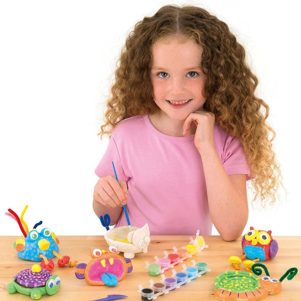 - Includes 1.2kg air-drying clay, 12 x 2.3ml ceramic paints, modelling tool, 10 pipe cleaners, 4 lengths of cord, 12 wiggly eyes, glue, paintbrush and guide