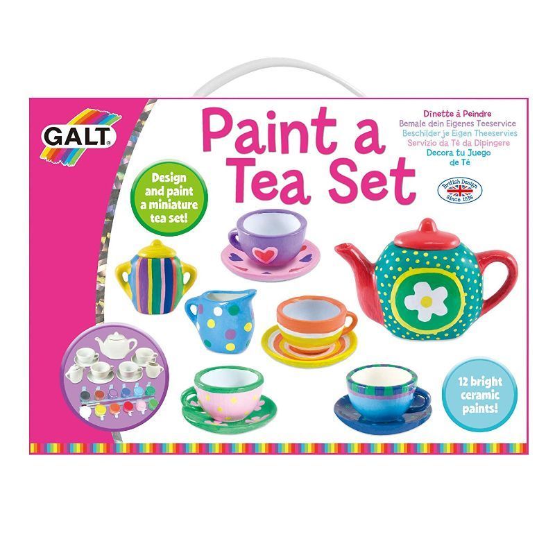 Paint a miniature tea set with colourful ceramic paints. Follow the designs on the box or create your own unique tea set.