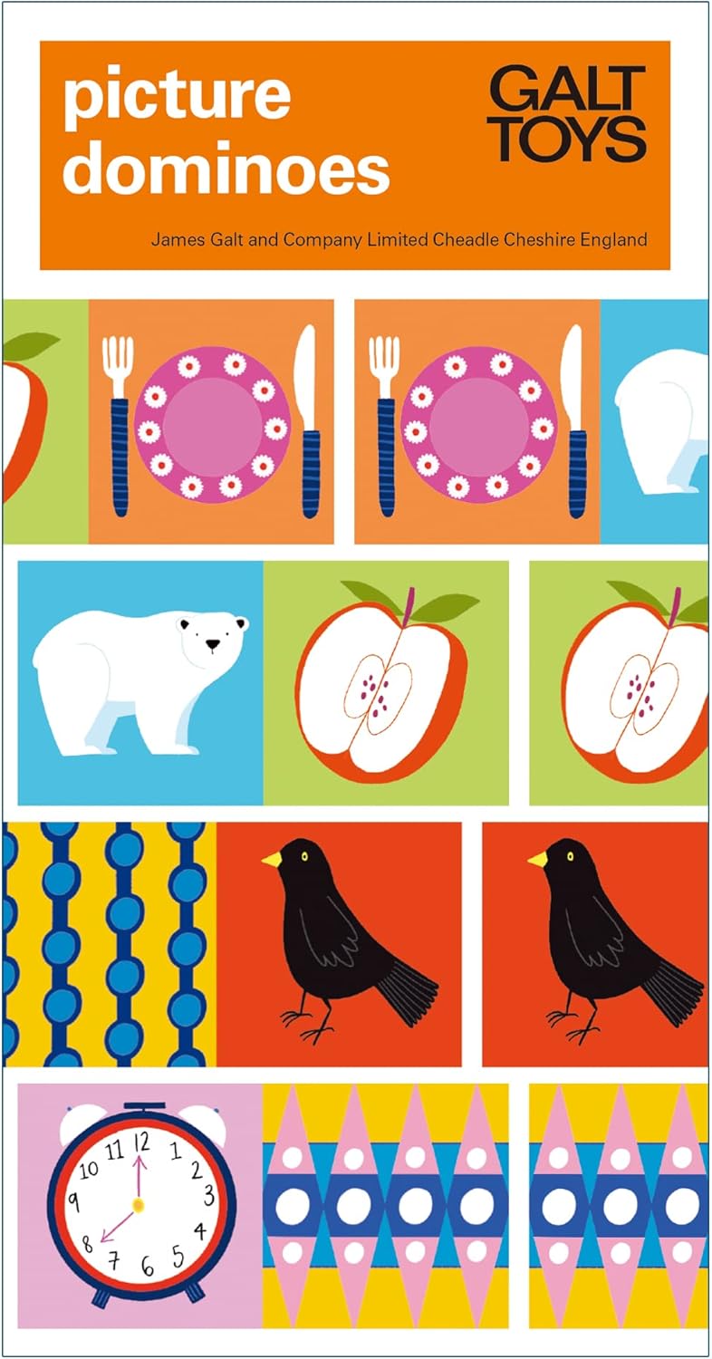 Based on the beloved Galt classic, Picture Dominoes contains 28 colourful card dominoes that help develop picture recognition and matching skills.