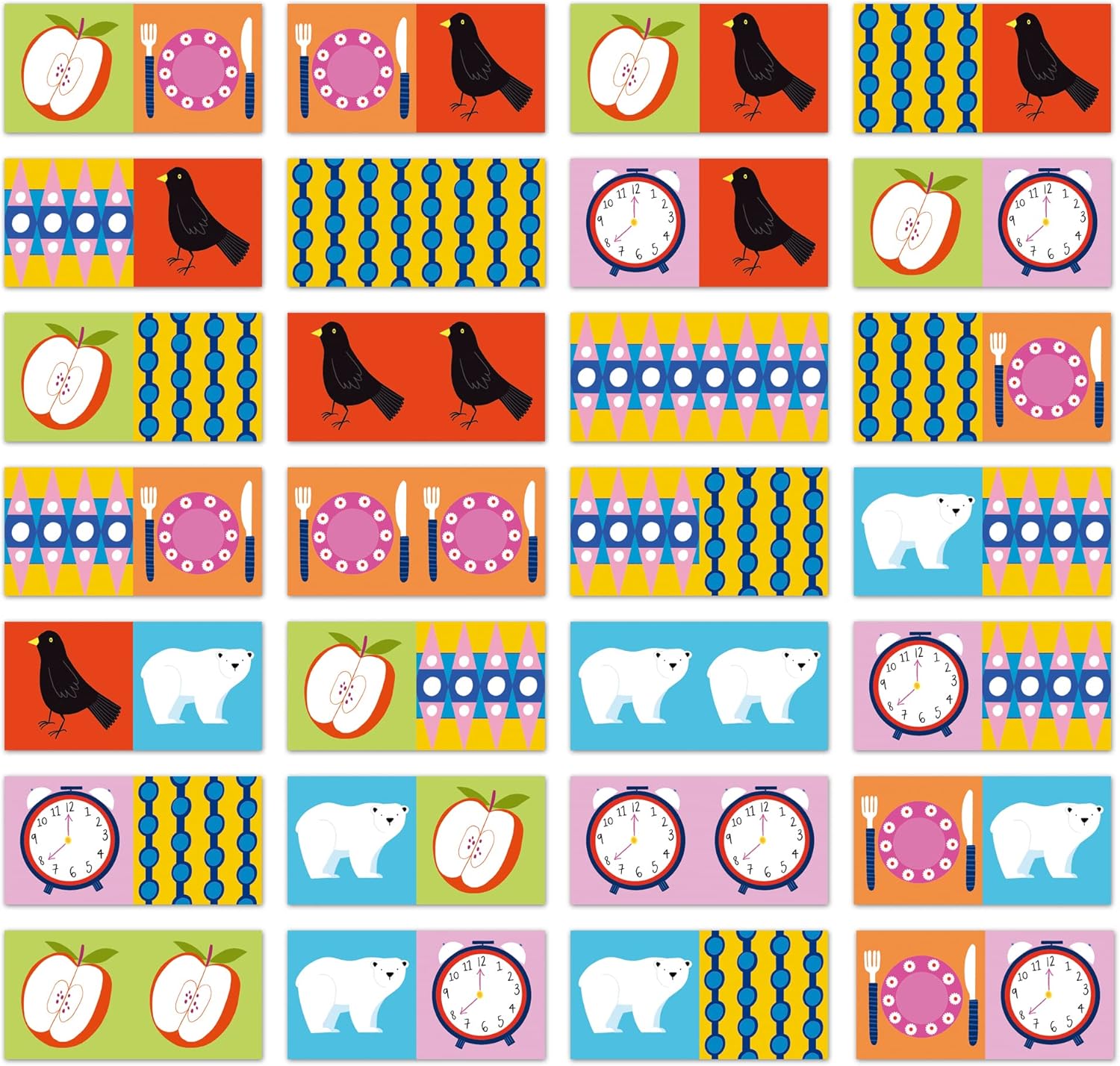 - Hours of Classic Family Fun: Fun-filled domino game for up to 4 players featuring bold pictures and patterns to match together