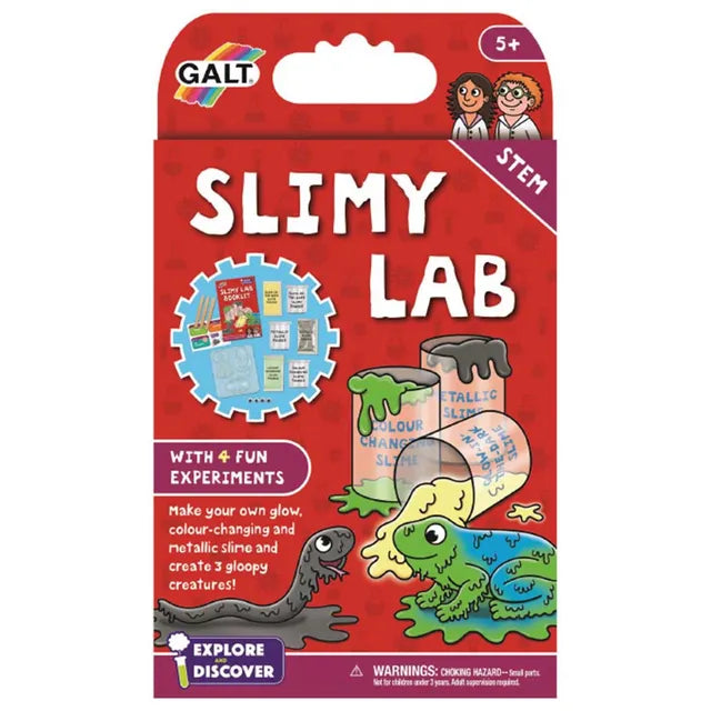 Explore this exciting kit and mix up glow-in-the-dark slime, mould 3 gloopy creatures including a slimy silver snake and discover how you can make slime change colour. Explore the wonders of science and discover more about the world around us. These exciting kits for young scientists all include a full-colour lab book with fun experiments. Explore and Discover Lab Kits will encourage early STEM learning and scientific thinking while having fun!