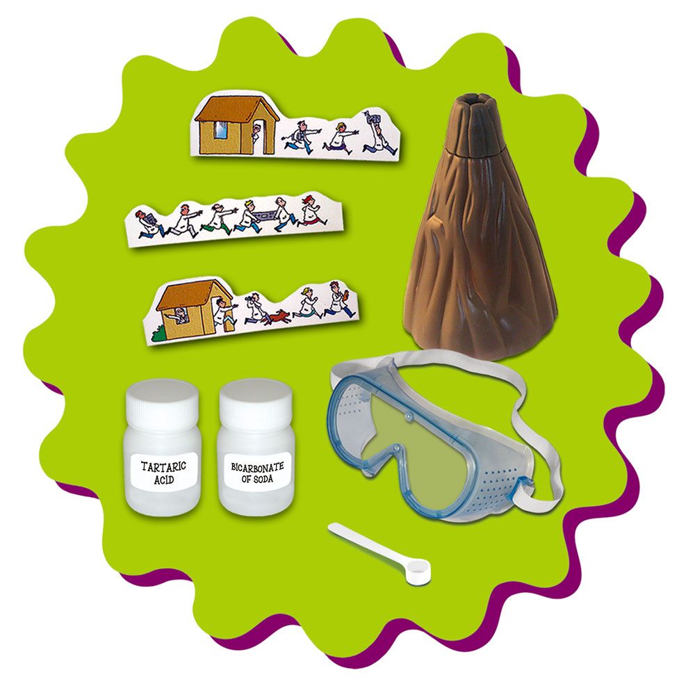 Make a lava-ly erupting volcano, become a survival safety expert and discover why volcanoes blow their tops. It includes an 8-page 'Horrible Info' leaflet along with plastic volcano model, tartaric acid, bicarbonate of soda, goggles, scoop and mini card stand-ups