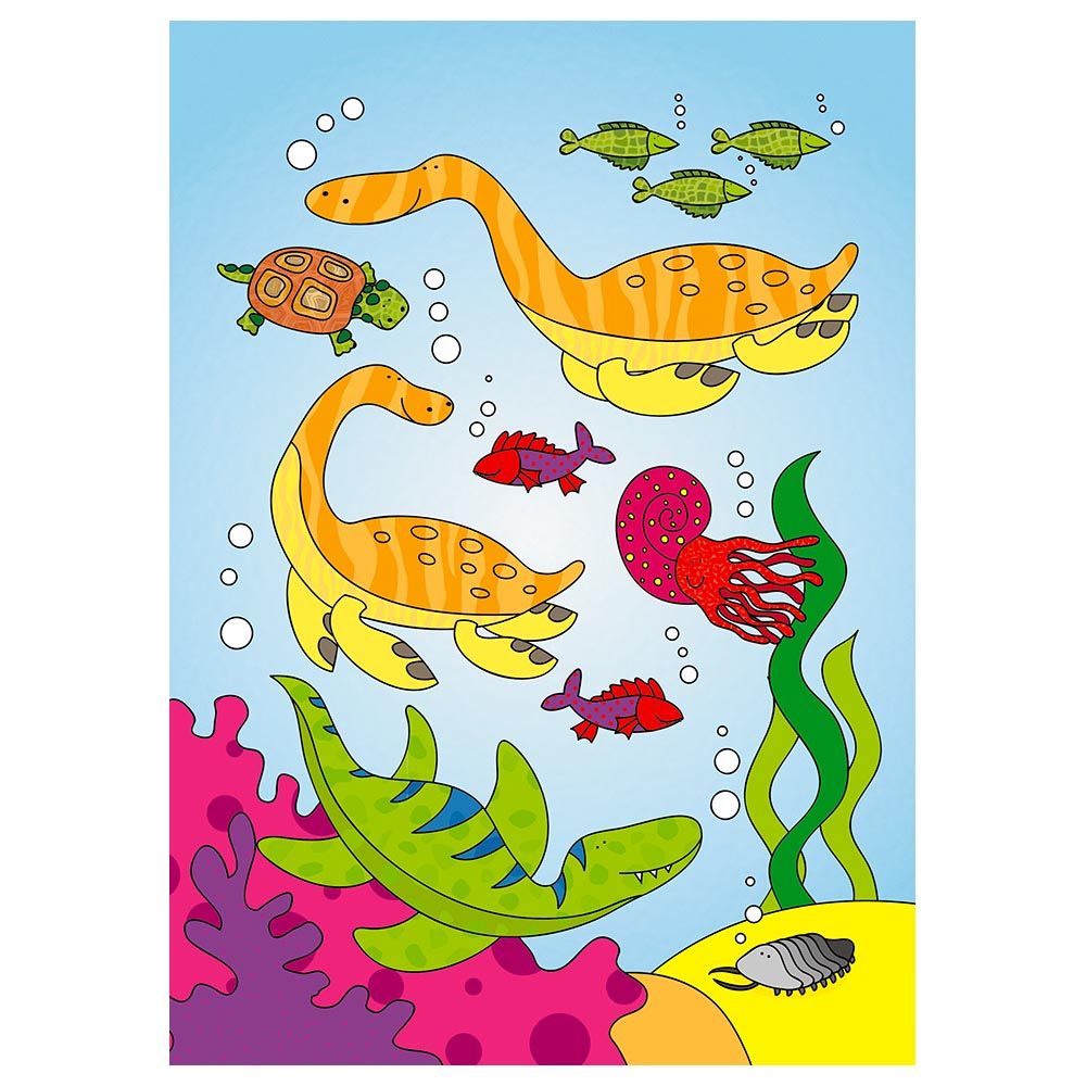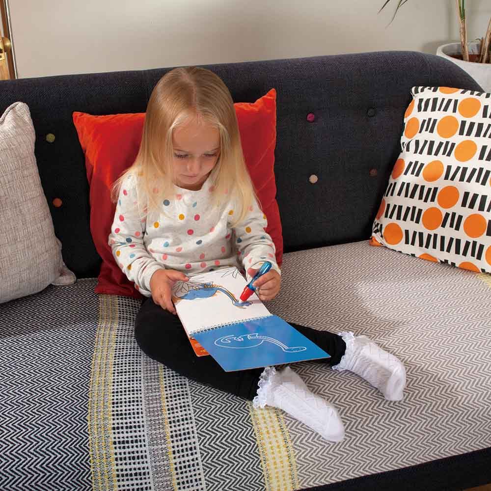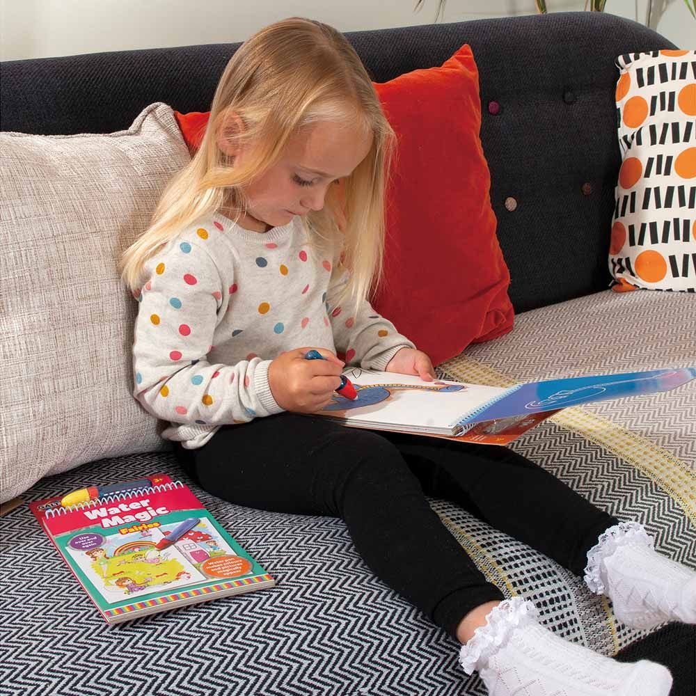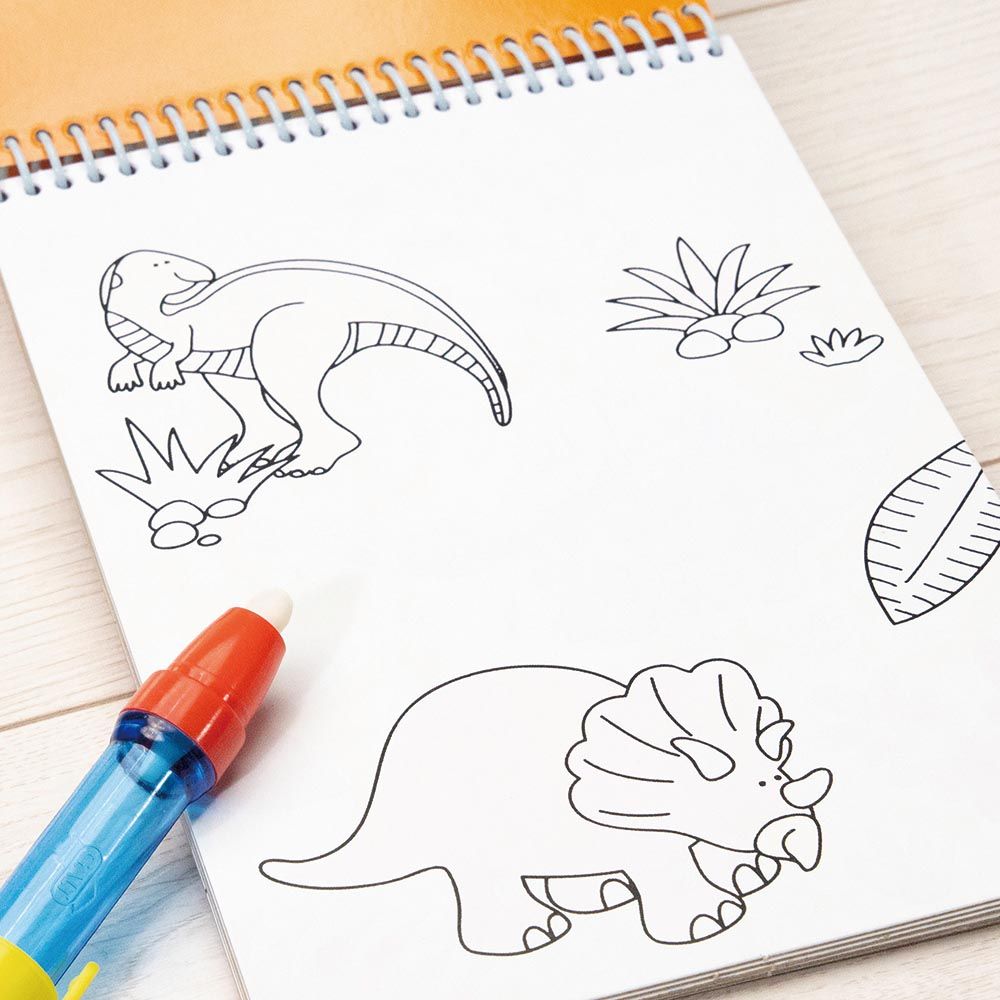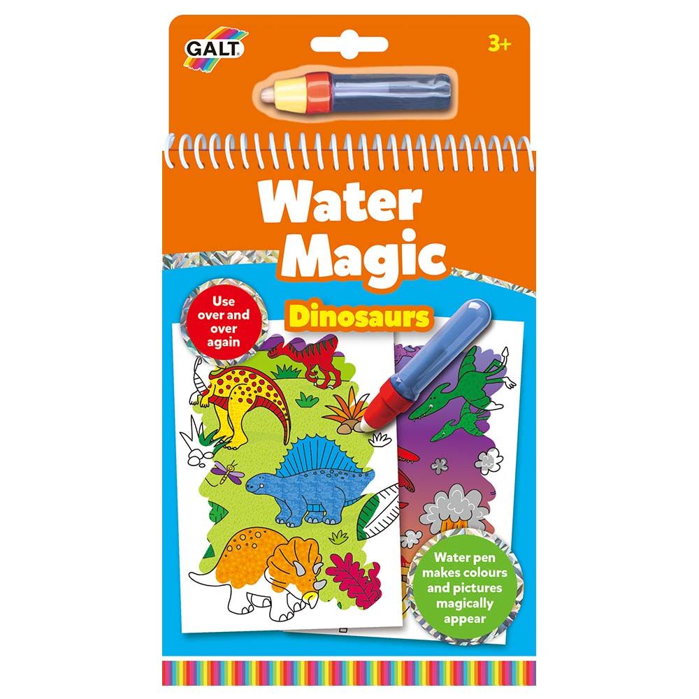 From Galt toys comes the Galt Toys Water Magic Dinosaurs. A chunky book that comes with 6 reusable pictures on a thick board for your precious little one to color in with the water pen. Simply fill the pen with water and use to reveal the colorful pictures beneath. Once the pictures dry the colors disappear and be used all over again. With the mess free colorings book this is ideal when travelling.