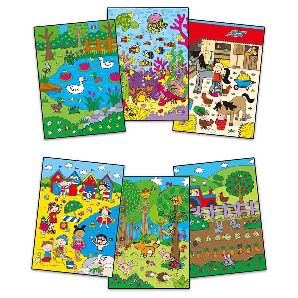 - Water pen makes coloured pictures magically appear then discover who's hiding in each scene