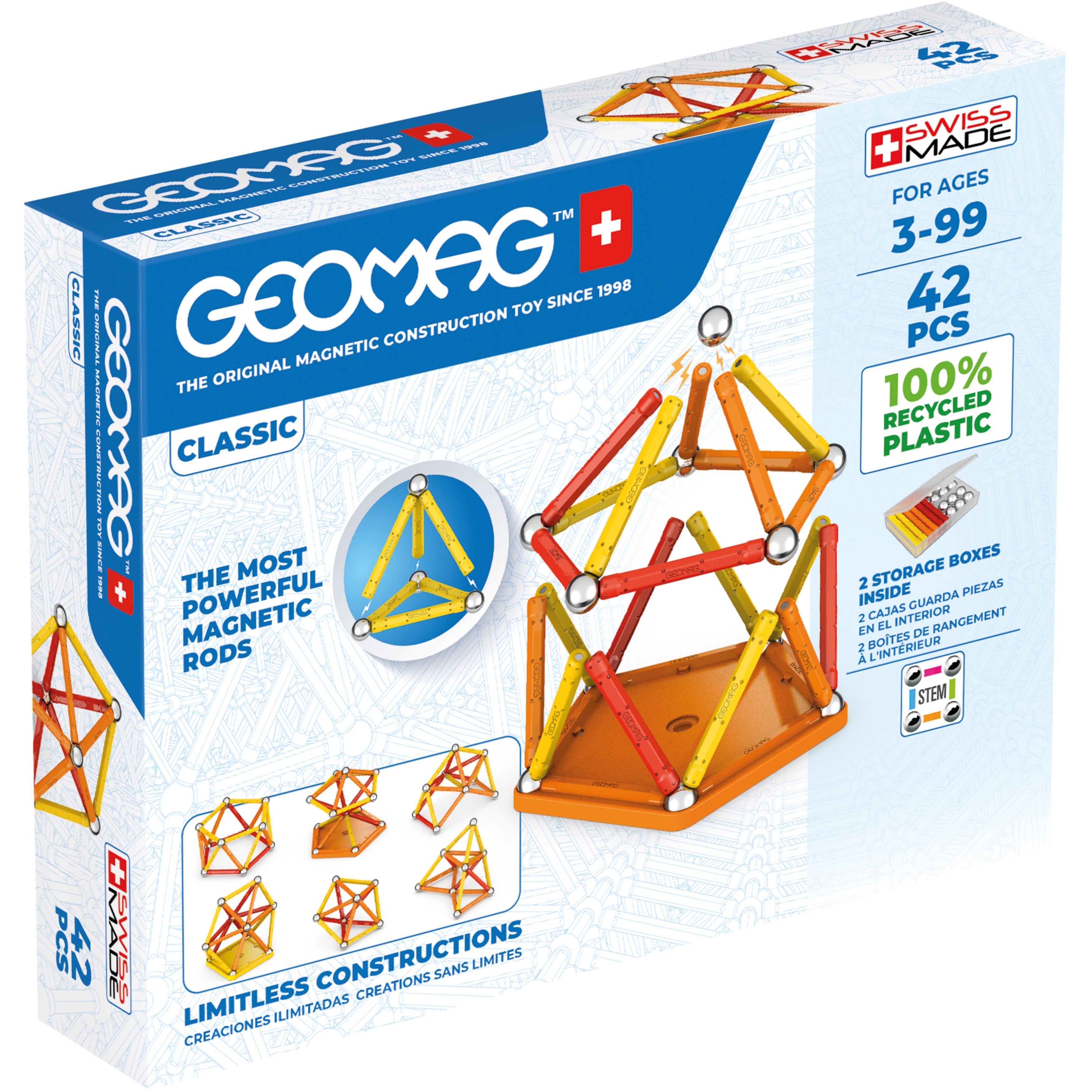 Unleash your imagination. Geomag Classic Color 42 pcs uses powerful magnetic rods and steel spheres, allowing children to create unlimited structures. Designed to help stimulate children's creativity by allowing for expanded play possibilities and promotes hands-on learning by offering a creative approach to problem-solving. Helps in the development of fine motor skills with endless construction possibilities.