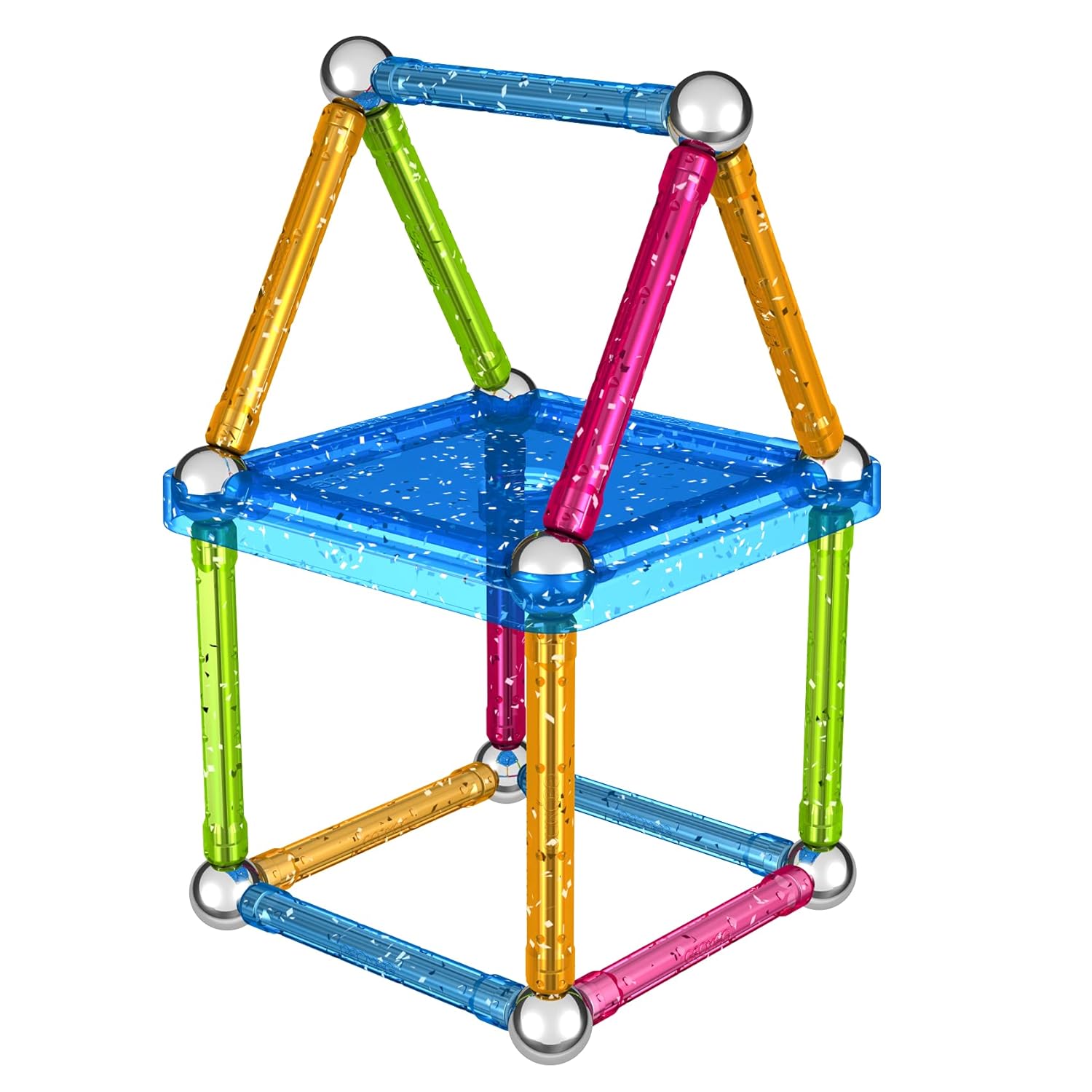 A small size set for a great imagination. Geomag Glitter: sparkly rods and coloured panels to brighten up any construction. Perfect if you want to create dazzling magical effects that make every creation special and unique