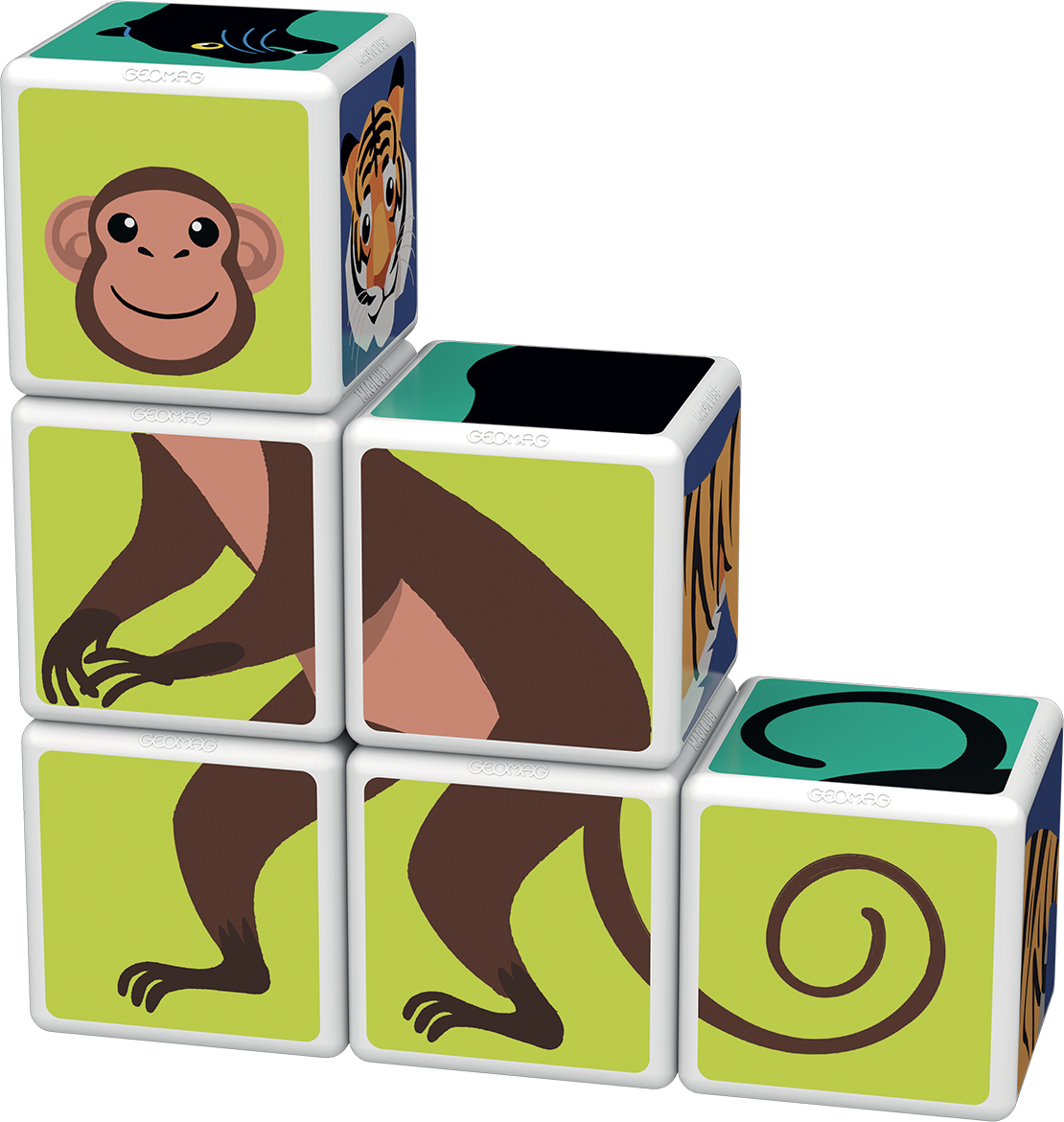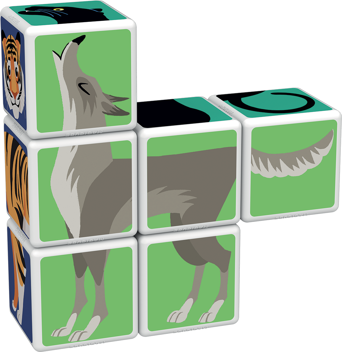 The faces of the 6 magicube cubes show the animals that live in the jungle: from the tiger to the panther. Try to create new fun combinations
