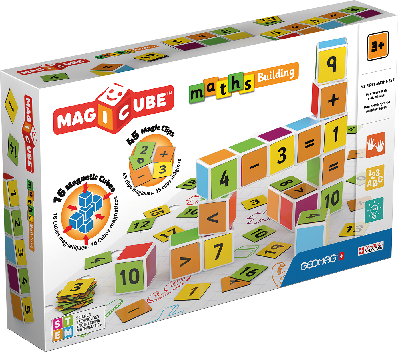 Geomag Education is the Geomag line for learning while having fun! Math Building stimulates creativity by helping children to play with numbers. Stick the magnetic pieces of Maths Building on your Magicube blocks and start playing! Geomag Magicube is a construction platform created by Geomag, a leading magnetic toy company. Geomag has re-invented the building game with cubes making it incredibly fun and above all magical! In fact, the cubes are able to stick together on any side. So they can even be suspended! In this way the constructions become surprising but also easy to make just for everyone, even for very young children.
