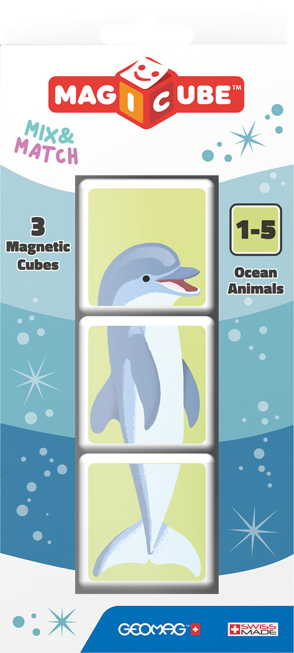 On the faces of the 3 Magicube Mix & Match Ocean Animals you can see pictures of fun animals. The animal kingdom comes to life with these magnetic cubes.