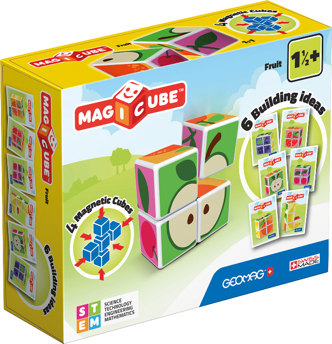 This set will enable children to discover the world of Magicube. Geomag Magicube Fruit contains four cubes which allow you to build six different fruit-themed creations. And that’s not all: the set is enhanced with three cards which give you building ideas and tips. This set has been designed for children from the age of one and a half.