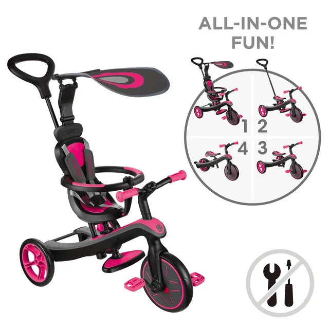 Globber 4 In 1 Explorer Trike Tricycle - Fuchsia
