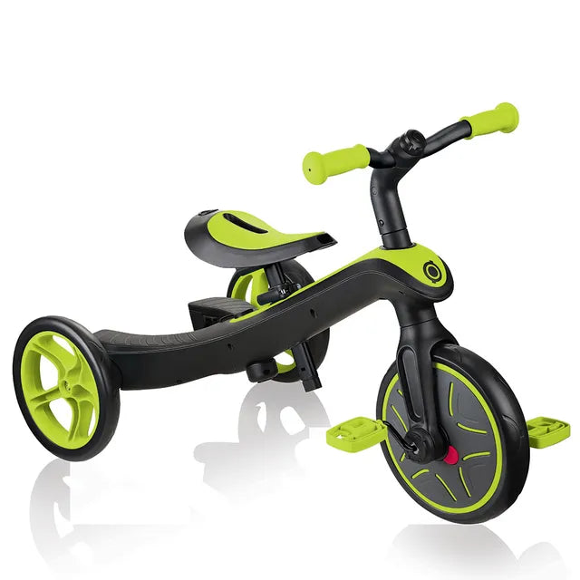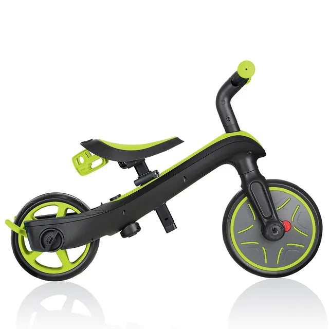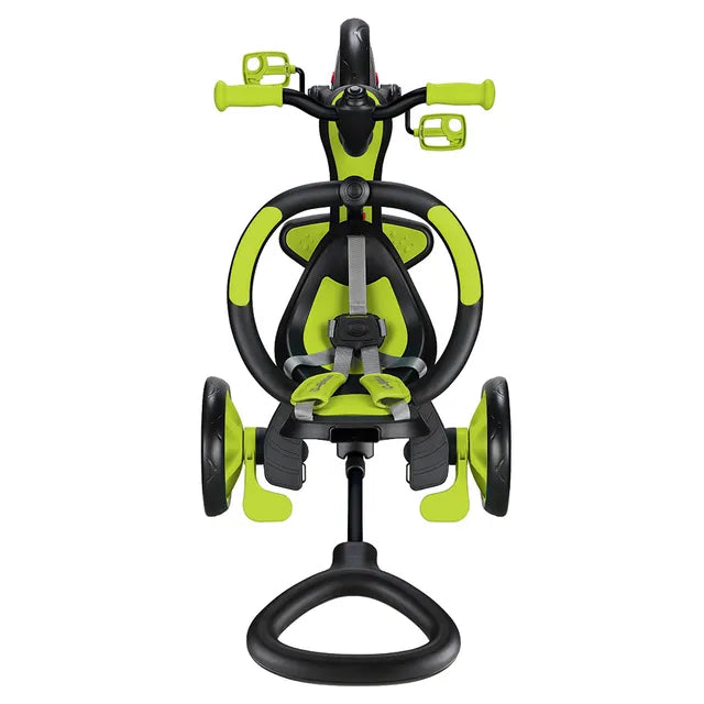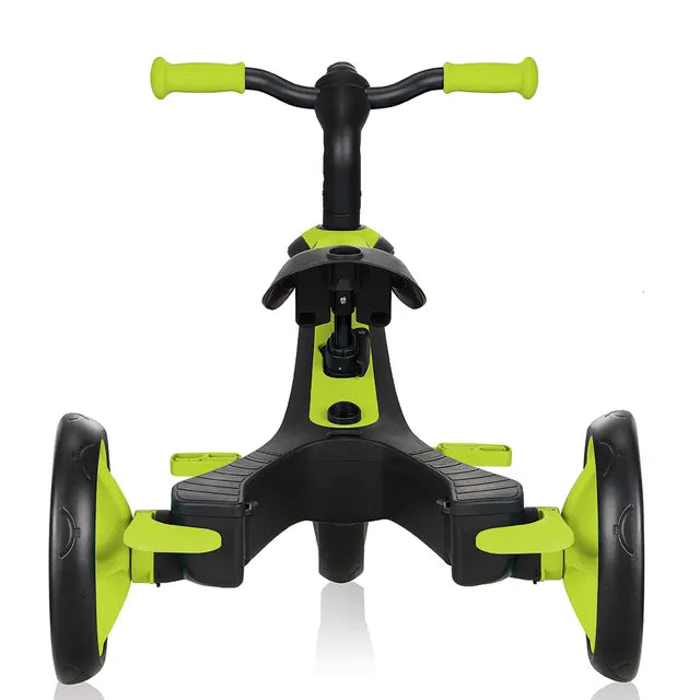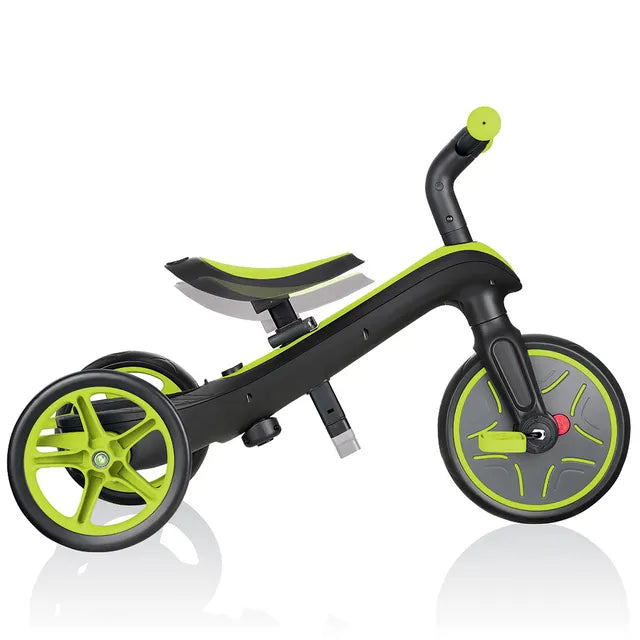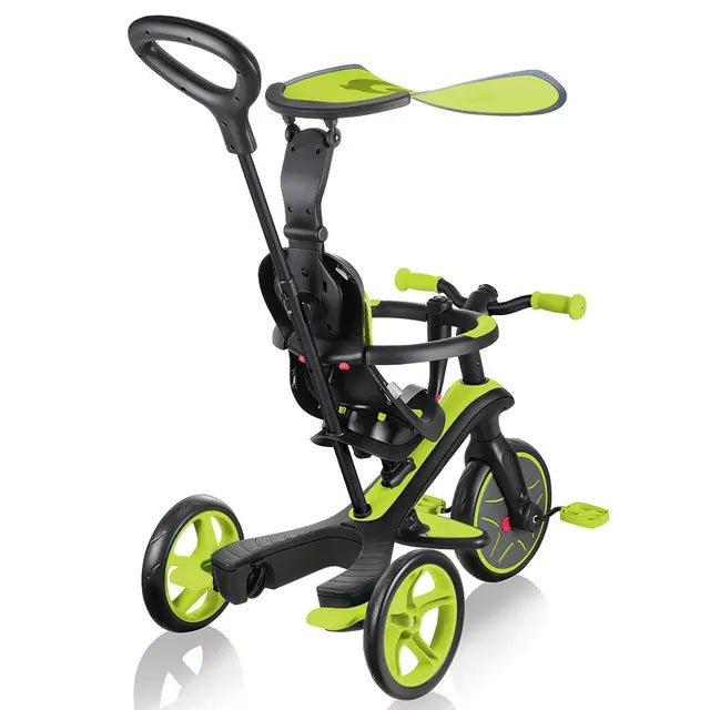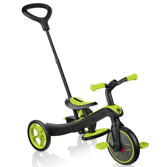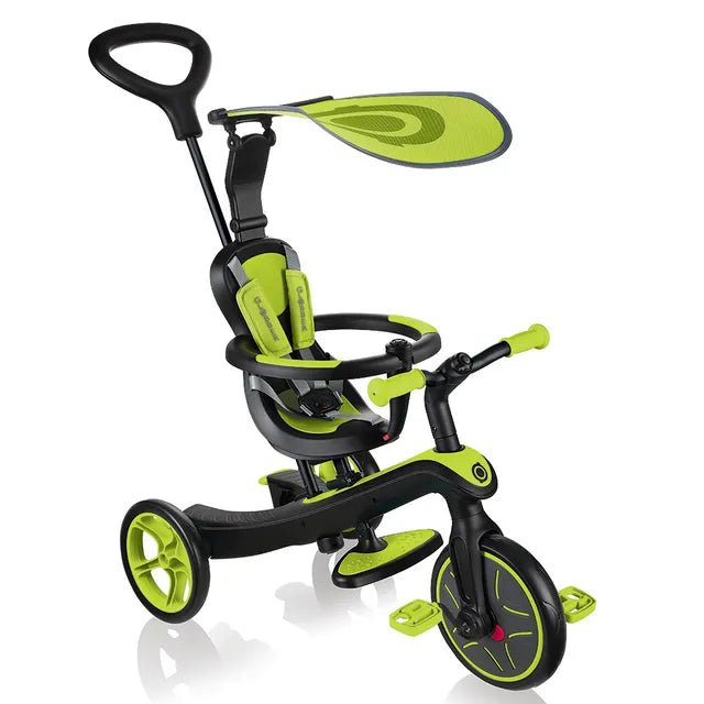 The Explorer 4in1 does not skimp on the comfort and safety of its small user with its high and hyper comfortable toddler seat with belts and 5 point harness. To respond to childcare, EXPLORE 4in1is equipped with a very handy directional rod and 2 rear brakes to completely stabilize the tricycle. This seat and the harness can be removed without difficulty thanks to the snap buttons, to reveal the adjustable saddle on 2 height levels (31 to 34 cm) covered with soft, flexible and non-slip synthetic rubber, like its handles which thus ensure a good grip and good support. Its 3 wheels guaranteeing stability and its flexible steering allow a truly tailor-made and safe learning.