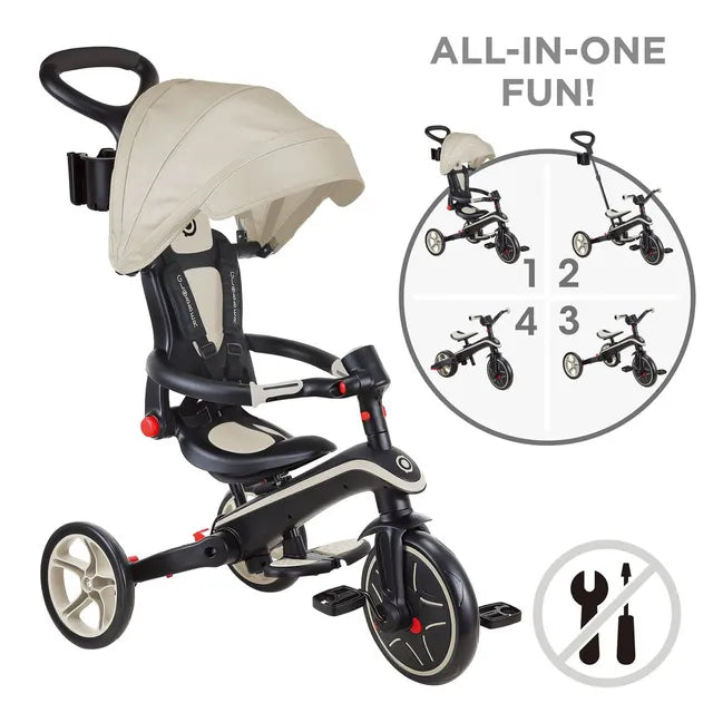 Globber's classic Explorer Trike, now foldable! Explore with your little ones wherever, whenever on Explorer Trike Foldable 4-in-1. This all-in-one foldable tricycle for toddlers brings even more convenience for on-the-go families with a patented folding system for easy transport when out and about. Explorer Trike Foldable 4-in-1 offers 4 ways to play - infant trike (10-36M), guided trike (18-36M), training trike (24-36M), and balance bike (2-5Y) and conveniently transforms alongside your child's development.
