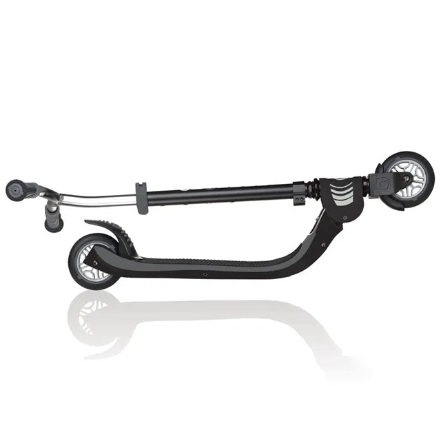 The Globber Foldable Flow offers sturdiness, comfort and practicality and is the perfect option as children make the transition to a two wheel scooter. The unique push-button integrated folding system is a brand new innovative feature that allows the scooter to be safely put into self-standing mode or trolley mode- making it easily transportable. The robust, bi-injected composite deck is supported by aluminum and comfortable EVA foam grip tape, all of which help prolong the longevity of the scooter. The high quality 121mm PU casted wheels are mounted on ABEC 5 bearings giving extra durability, while the extra wide column provides sturdiness and safety as children build confidence on their two wheel scooter. New durable TPR grips are dual coloured and are practical for the comfort of the rider. The adjustable T-bar has four different heights, allowing the scooter to grow with children