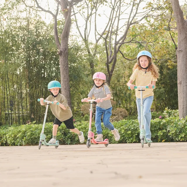 - Have a blast with FLOW FOLDABLE JUNIOR LIGHTS and make your scooting days even brighter! This 2-wheel scooter for kids (aged 3+) has LED light-up wheels that flash in blue, green, and red for a colourful ride all day long. No batteries are needed, as the light-up wheels use dynamo lighting—it runs purely on the kinetic energy produced by your scooting power. Enjoy some seriously cool light-up fun