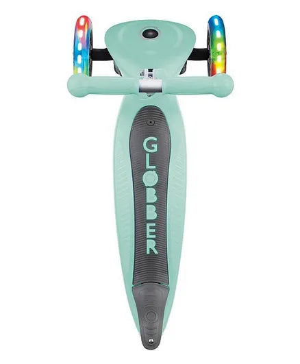 - Patented Steering Lock System - Teach those little feet to balance on a 3-in-1 scooter at your toddler’s pace. GO•UP ACTIVE LIGHTS has a patented steering lock system exclusive to Globber: The front wheels are fixed in a vertical to-and-fro movement, allowing your child to practice balance and gain confidence in scooting. Once they’re ready to ride, simply release the steering lock button so they can start turning the wheel and scoot on their own!