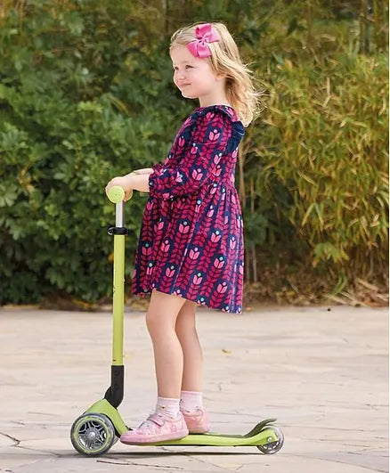 - Globber’s patented steering lock system fixes the front wheels in a vertical to-and-fro movement, helping kids learn and master balance.