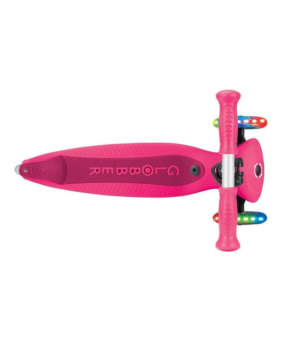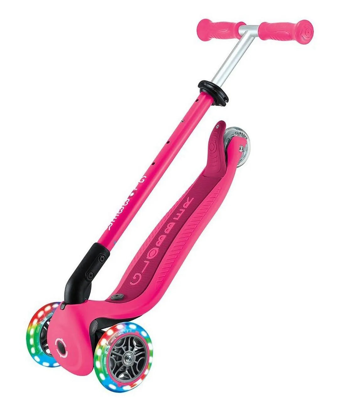 - Patented Steering Lock System - Teach those little feet to balance on a 3-in-1 scooter at your toddler’s pace. GO•UP ACTIVE LIGHTS has a patented steering lock system exclusive to Globber: The front wheels are fixed in a vertical to-and-fro movement, allowing your child to practice balance and gain confidence in scooting. Once they’re ready to ride, simply release the steering lock button so they can start turning the wheel and scoot on their own!