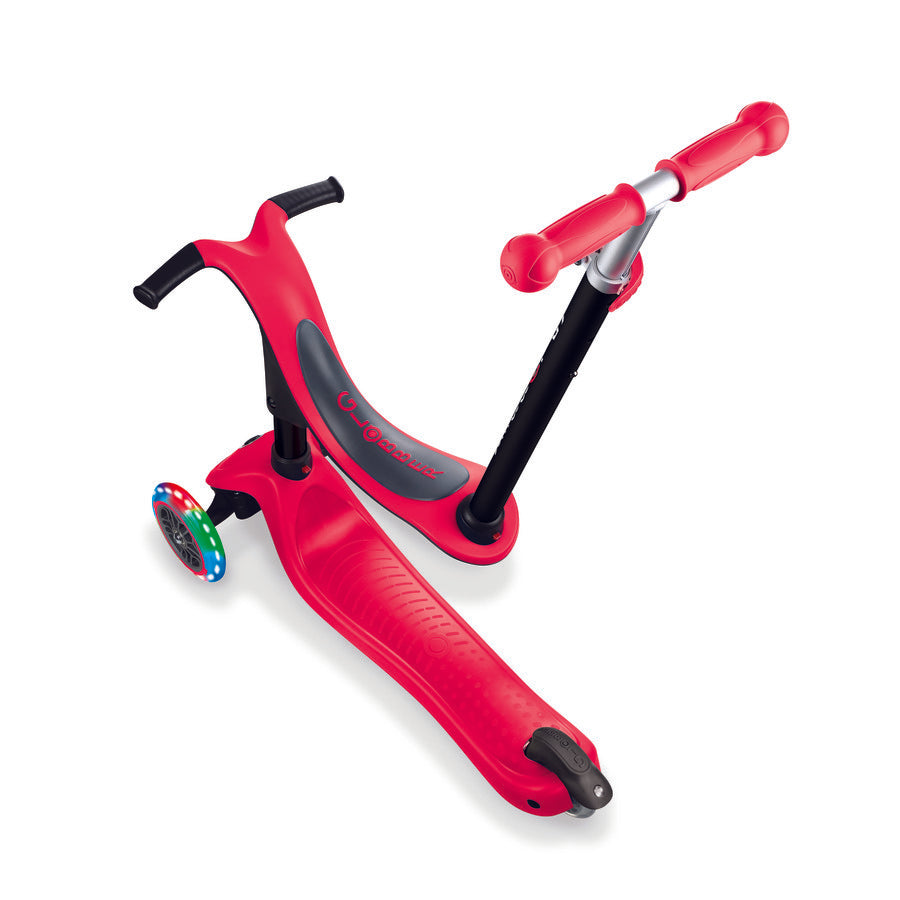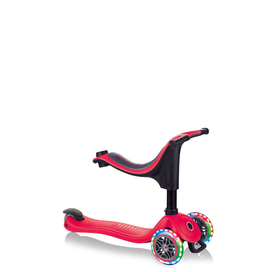 Globber’s GO UP SPORTY LIGHTS – the ultimate 3-wheel foldable scooter with illuminating lights and a seat for toddlers and kids. This innovative scooter transforms effortlessly into a ride-on, walking bike, and toddler scooter, catering to various play preferences. Designed for toddlers aged 15-36 months in ride-on and walking bike modes, while ideal for kids aged 3-7+ in scooter mode. Enjoy endless playdates with this trusted companion, designed to accompany your child for years to come!