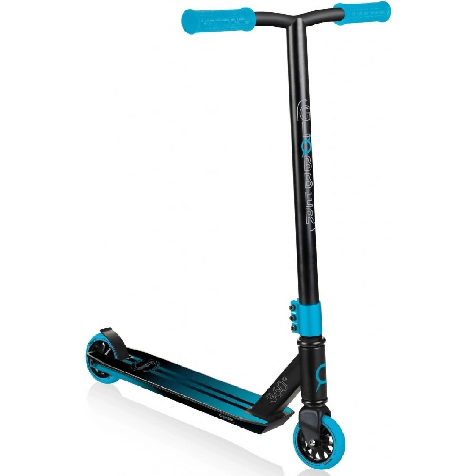 What makes Globber's GS 360 the best 2-wheel beginners stunt scooter for kids & teens aged 6+? Globberƒ??s GS 360 stunt scooter for kids aged 6+ is the perfect stunt scooter for beginners, coming with safe & robust components to safely learn the best freestyle moves! Globberƒ??s GS 360 stunt scooter for kids is packed with all the essential features to deliver a smooth experience while at the skatepark! Globberƒ??s GS 360 stunt scooter for kids aged 8+ and teens comes with a sturdy 1 channel T5 treated aluminium deck and downtube; high-rebound & high-quality 100mm PU casted wheels with 10 spokes aluminium alloy core; 32mm diameter steel T-bar with a double clamp and a reinforced headset, to safely play and learn stunt scooter tricks for hours
