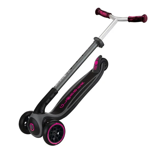 - Patented Folding System - Effortlessly fold your MASTER PRIME when outdoors or after a fun day of scooting—its patented folding system can easily be folded by a simple push of a button. Trolley mode is also available to help roll the scooter after playtime