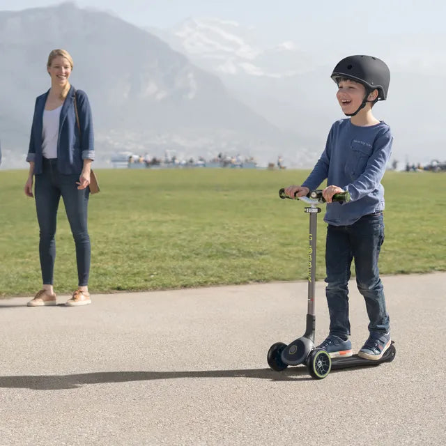 - Patented Folding System - Effortlessly fold your MASTER PRIME when outdoors or after a fun day of scooting—its patented folding system can easily be folded by a simple push of a button. Trolley mode is also available to help roll the scooter after playtime
