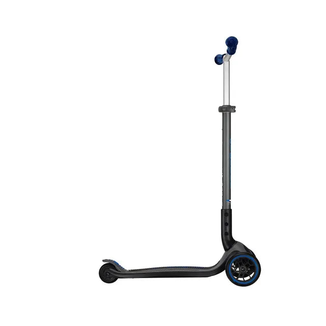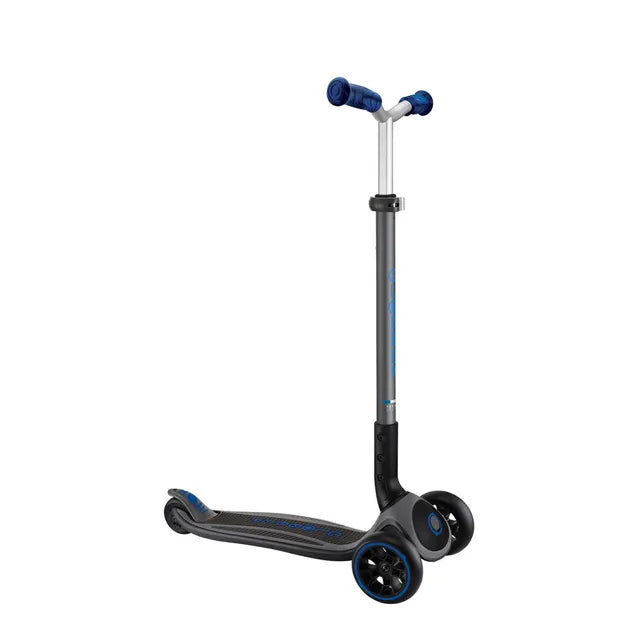 - Patented Steering Lock System - Master balance on your large 3-wheel kick scooter! Globber’s patented steering lock system fixes the two front wheels in a locked vertical movement. Once you’ve mastered balance and are ready to scoot, simply unlock the button to enable lean-to-steer riding