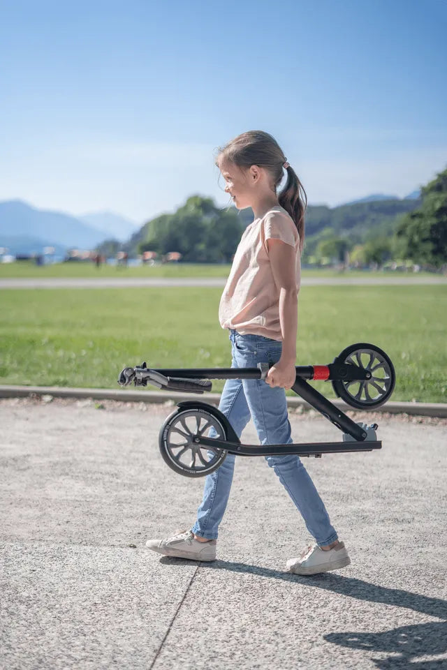 Globber ONE NL 205 Adult Scooters have the exclusive & patented 1 second folding system, making it simple to fold & easily carry while on-the- go. Thanks to the one second folding system on the pole, adults no longer have to awkwardly bend down to fold a scooter. Simply lift and pull the clamp, and the scooter will automatically go into self-standing mode and down into trolley mode. The simple lift & pull folding system on the pole, easily assembled and stored away. With the triple reinforced deck finished with padded EVA foam and 205mm PU wheels, ONE NL 205 is extremely comfortable to ride for hours
