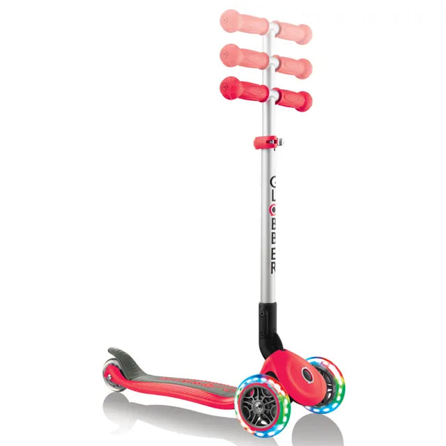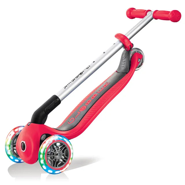 Making innovative products accessible to all. Primo scooters offer a range of patented innovations without compromising on style or functionality, to deliver ultimate value for money. New wider composite deck design in with a nylon reinforced body frame supports up to 50kg. Safe, patented integrated folding system with a push button. Trolley mode compatible. Patented steering lock button fixes the steering system of the two front wheels to only move forward & backward.