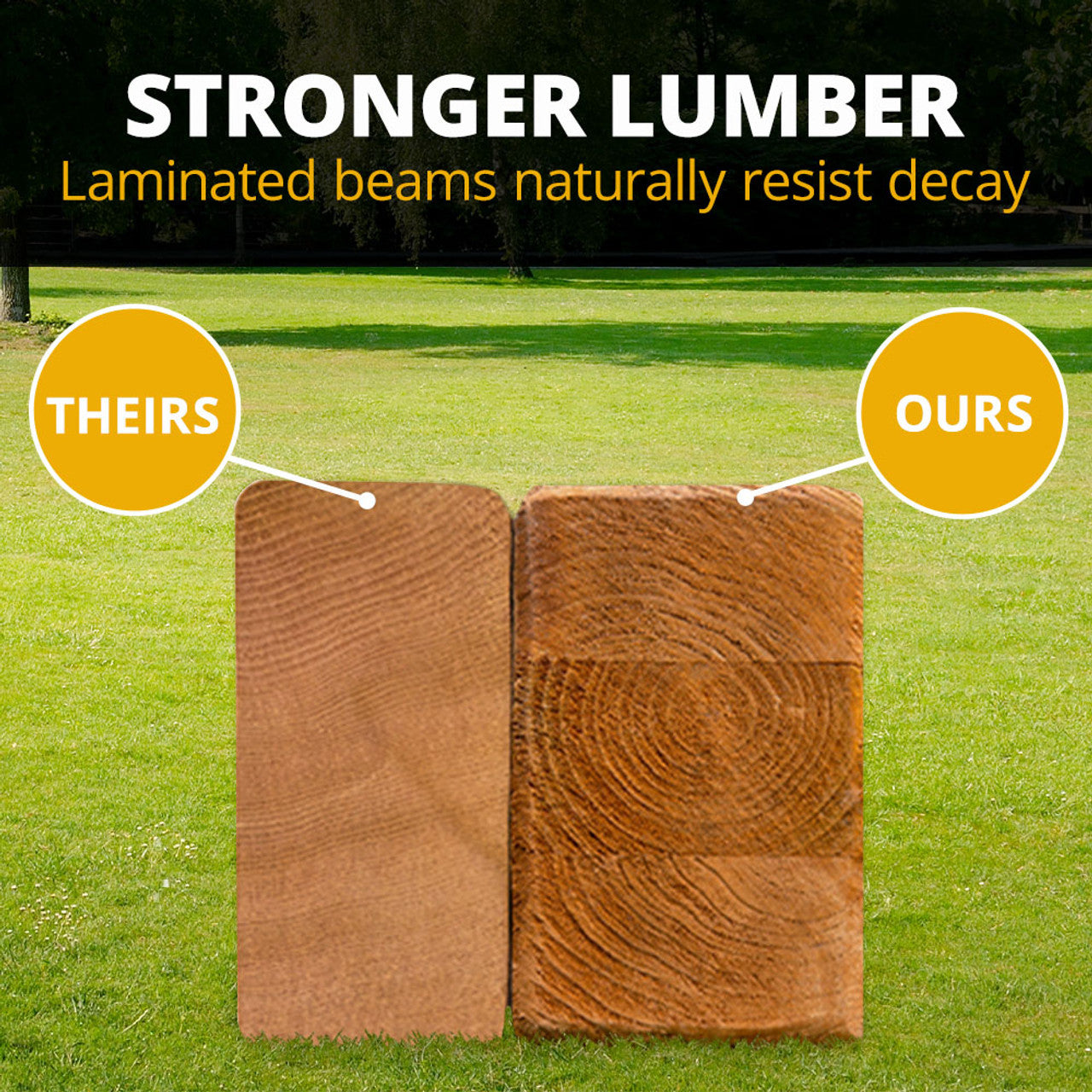 - Available with a Standard Wood Roof featuring Sunbursts, Dormers and a Chimney; or our Wood Roof w/ Treehouse Add-On!