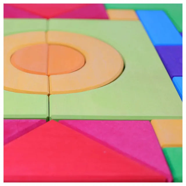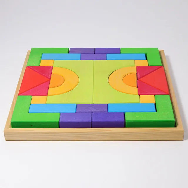 The shapes and colours of this building set are inspired by Friedrich W. A. Fr??belŸ??s concepts about child development and education. Friedrich W. A. Fr??bel (1782-1852) was a German pedagogue who created the concept of the Ÿ??kindergartenŸ?�.The 30 Piece Basic Building Set is ideal for young children with its fewer and larger blocks with simple shapes. Later on, children find everything they need for building with the 46 blocks in this Building Set. Children can build walls, fences, stalls as well as houses, towers and castlesŸ?? whatever their play requires to be built.By building and playing with these blocks, children develop fine motor skills and spatial thinking skills. 46 buidling blocks in a wooden frame. Materials: lime wood, non-toxic water based color stain/non-toxic plant based oil finish. Size: frame length 44,5cm. single blocks 4cm thickness, length 4-16cm.