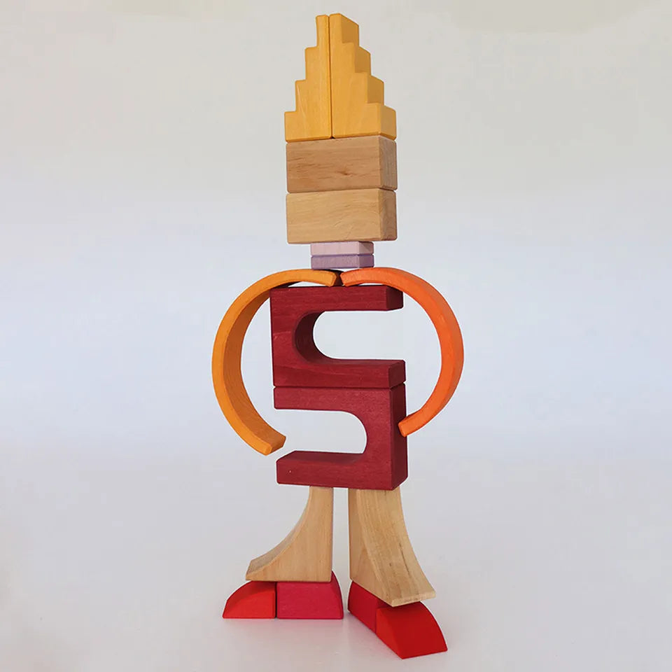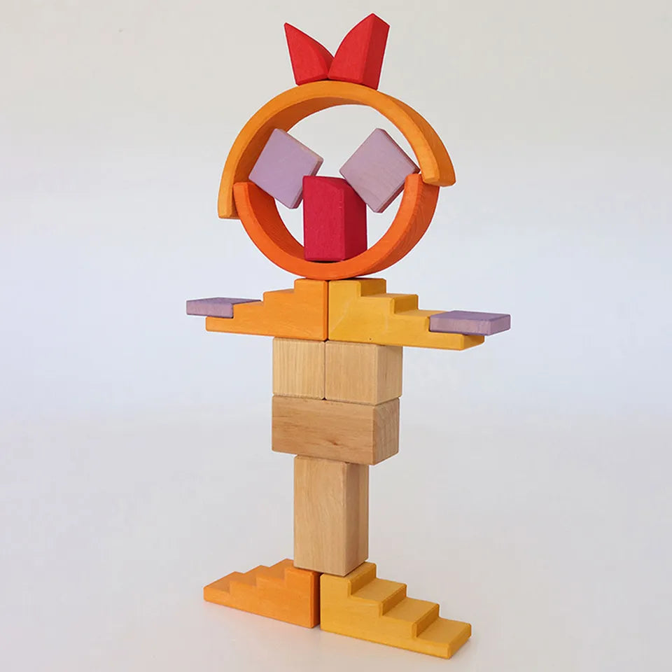 Rich yellow, orange and red tones mixed with natural wood give the Building World Desert Sand a deep warmth. The building materials come in a wide variety of shapes allowing imaginative free building and will complement the GRIMM'S assortment with their wonderful details, such as the special robes of the two friends and a mountable, movable door. Our Building Worlds come in a handy frame and are just waiting to burst it with the imagination of a child. They are practical small Building Sets promoting exceptional small Play Worlds. Perfectly incomplete, they invite you to add your imagination and create new worlds.