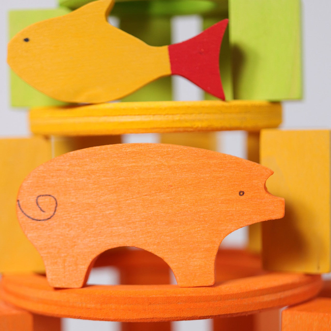 Steiner educators will love this multi-purpose educational toy as it can be used for natural play in a myriad of ways - build with it, learn to count, tell stories, learn colours, make pretty patterns or use the figures as ingredients in a play kitchen.
