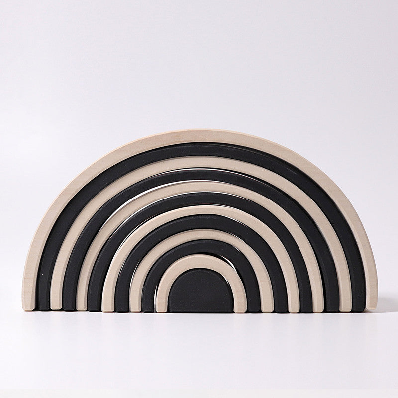The Monochrome Tunnel is really versatile: small children stack, sort and build and as the children get older they will use it as a cradle for dolls, as fence for animals, like a tunnel or bridge for vehicles, as house for dwarfs and dollhouse dolls, build amazing sculptures... this Tunnel will always be integrated in playing with a lot of fantasy.