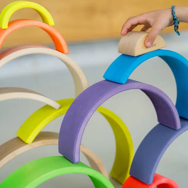 Our classic stacker looks great in any colour and so of course had to be included in our Neon Collection! It consists of 10 arches, creating a strong contrast with colours ranging from gaudy neon to soothing natural tones. This makes it not only an incredibly versatile toy for stacking, building, sorting and free play for children, but also a stunning centre piece for adults.