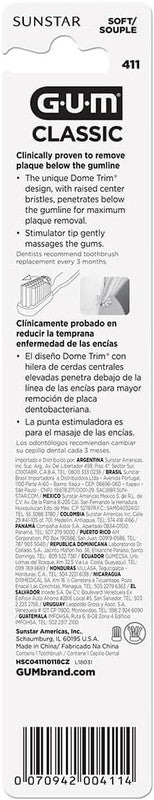 Patented Dome-trim bristle profile, clinically proven to provide exceptional plaque removal and reduce gingival inflammation. Rubber tip stimulator for gingival massage.