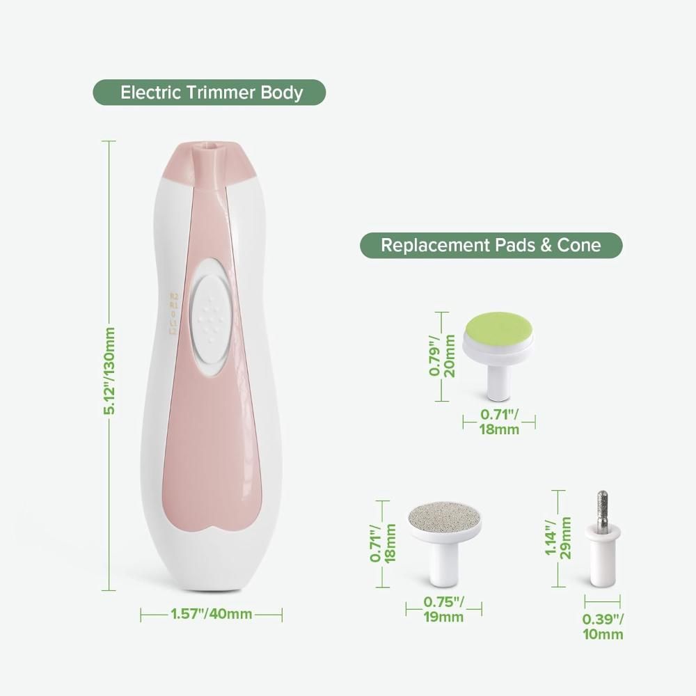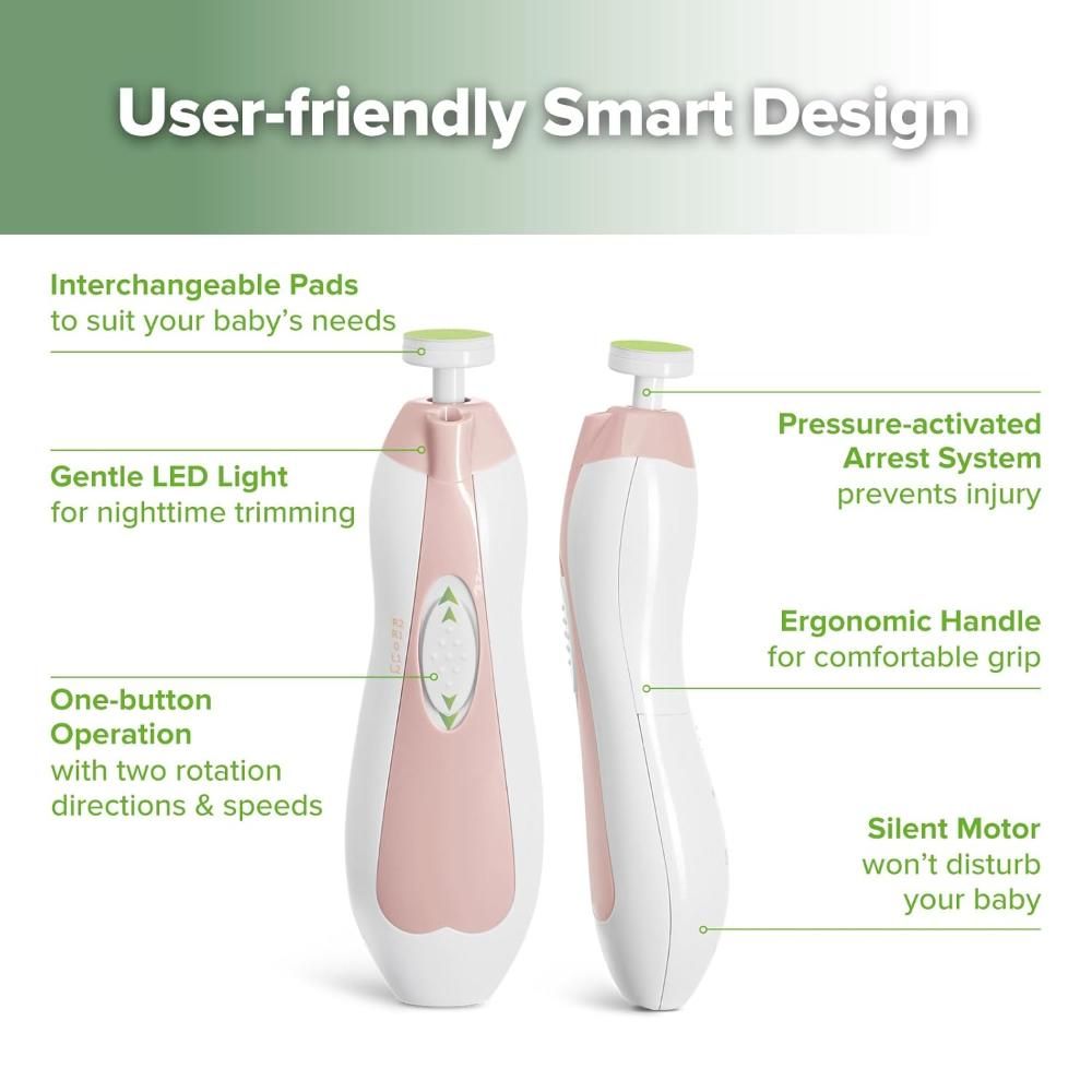 Attach the trimmer pad suitable for your child's age and gradually file down their nails! The trimmer pads make your baby's nails smooth and don't leave sharp edges that may scratch their delicate skin. We've also included a metal pad and cone so parents can file down their nails too!