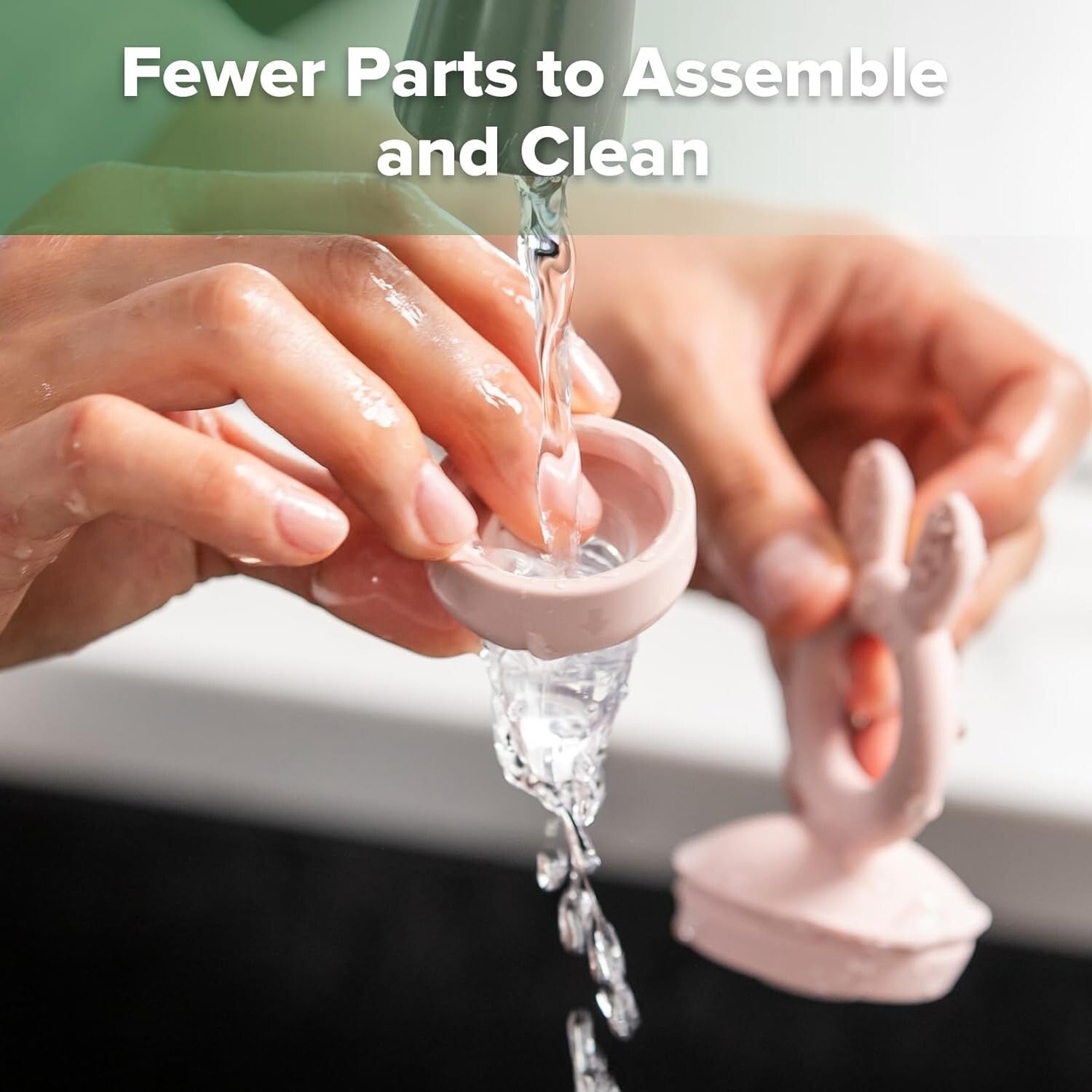 - Textured bunny ears on the easy-hold Feeder top provide bonus entertainment and develop motor skills.
