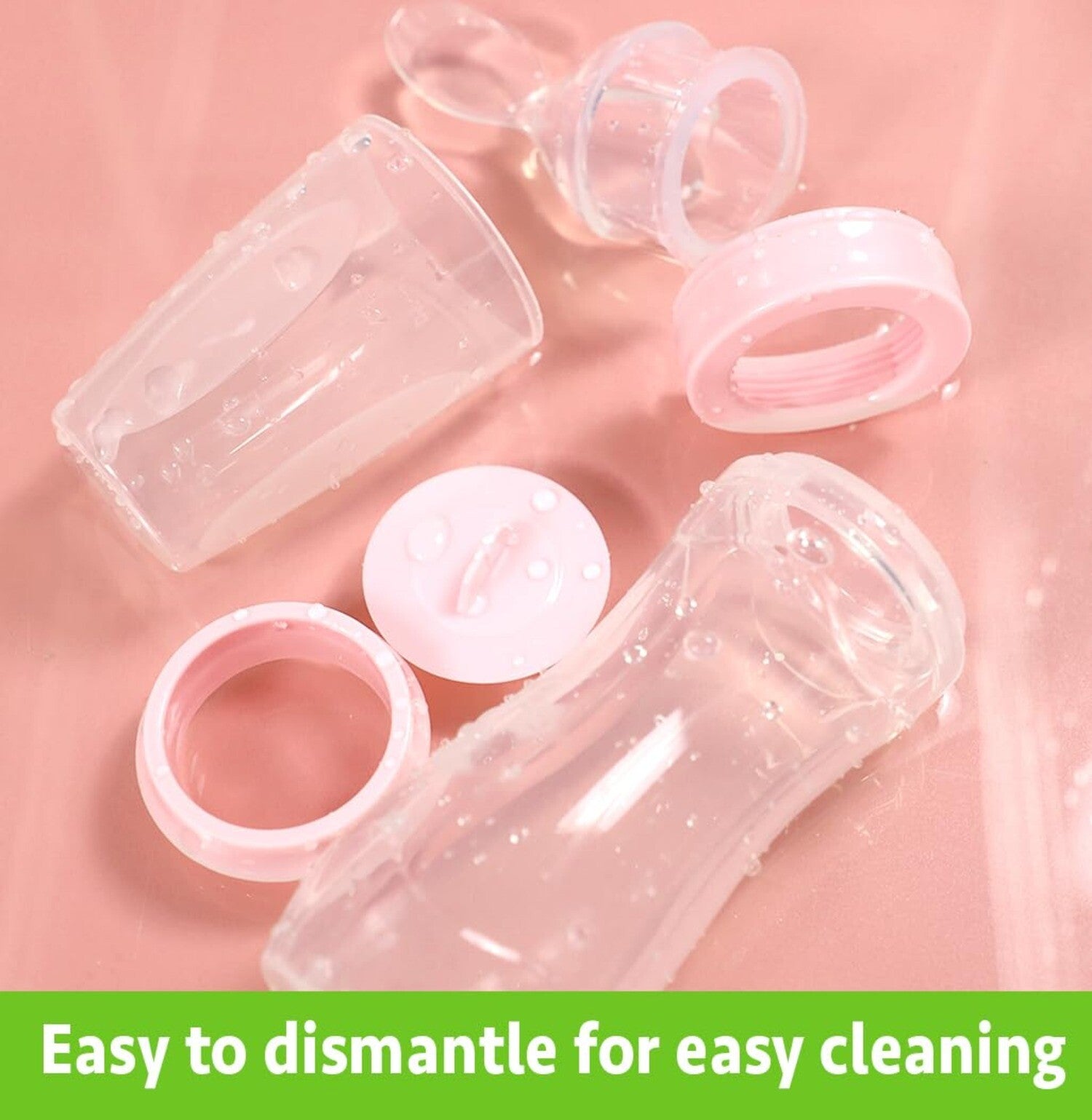 Simply fill the tube with baby food and pop on the lid. The food will remain inside the leakproof silicone tube until it's time for a snack. Remove the lid and gently squeeze the tube to dispense food onto the spoon. Once you've finished feeding your little one, put the lid back on and place it back in your bag!
