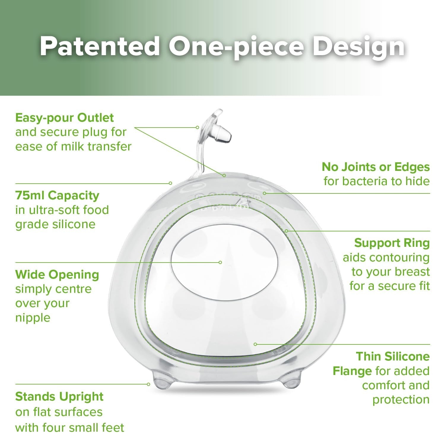 The one-piece design attaches to your breast with suction and sits securely and discreetly in your bra. This suction is light and gentle to hold the product in place. It won't draw out additional milk, so it's ideal for mums who leak breast milk and want to save it without increasing their supply.