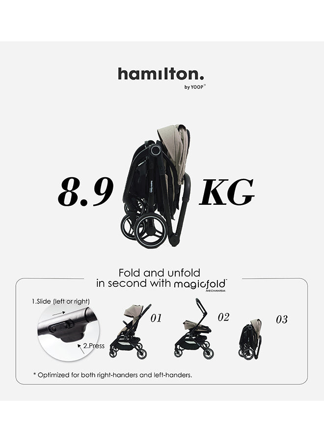 - Easy to Use: Hamilton is one of the most lightweight, compact, full-feature stroller available with 360° Rotating Seat MagicFold Technology. Designed for every situation, every day, you can carry it anywhere with one hand.