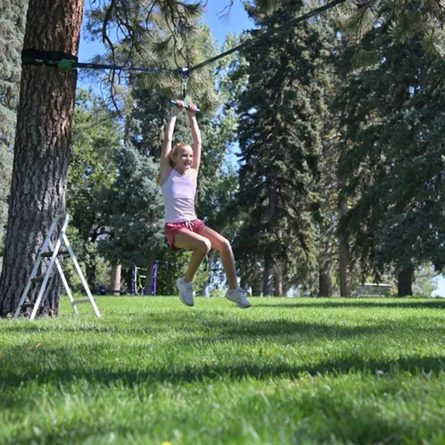 - Lightweight, Roller FunLine kit to give kids the thrill of a zipline with a much easier set up and affordable cost.